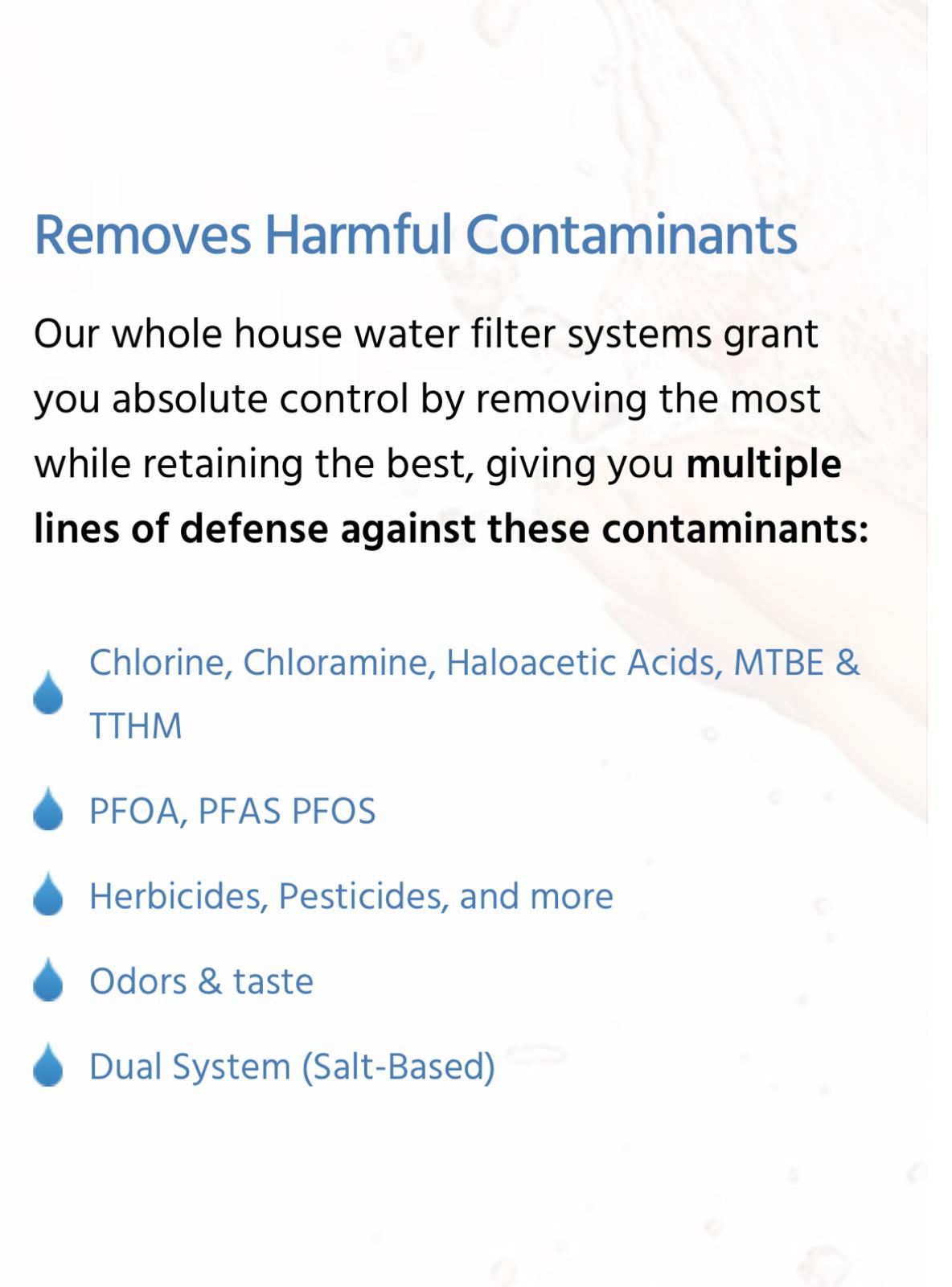 Our whole house water filter systems grant you absolute control by removing the most while retaining the best, giving you multiple lines of defense against these contaminants: